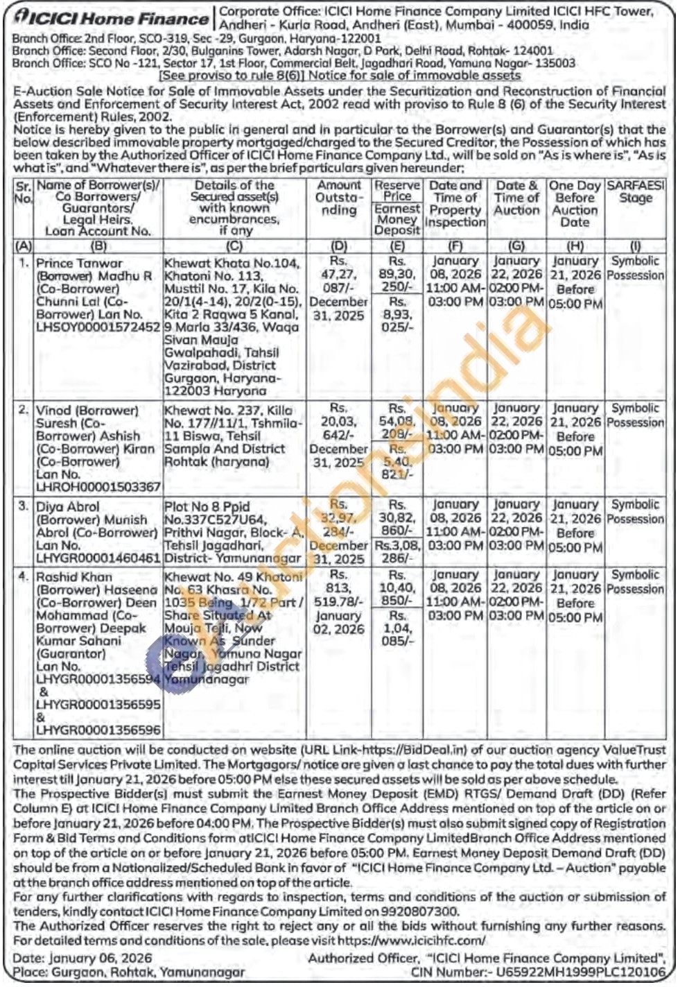 contact ICICI Home Finance Company Limited on 9920807300.