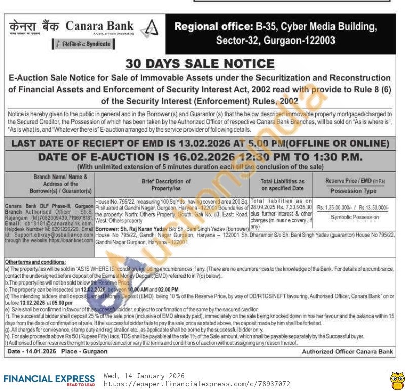 House No. 795/22, measuring 100 Sq Yds, having covered area 200 Sq. Fr situated at Gandhi Nagar, Gurgaon, Haryana-122001 Boundaries of the property North: Others Property, South: Gali No. 03, East: Road, West: Others property