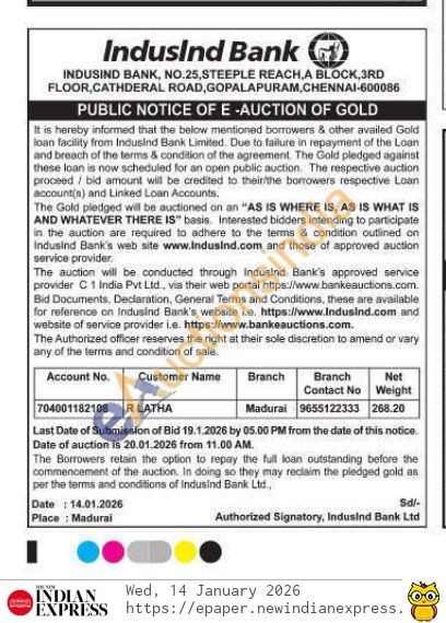 IndusInd Bank Gold Auctions Auction in Madurai