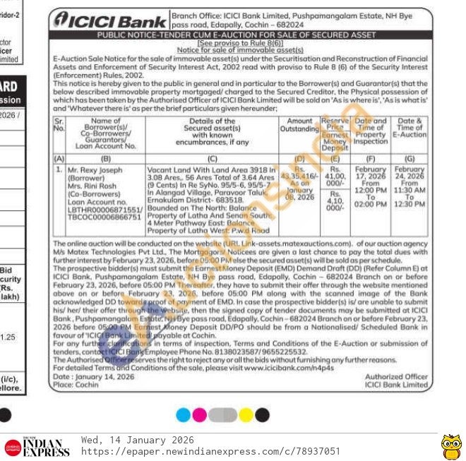 Vacant Land With Land Area 3918 in 3.08 Ares,, 56 Ares Total of 3.64 Ares (9 Cents) in Re SyNo. 95/5-6, 95/5-7 In Alangad Village, Paravoor Taluk. Ernakulam District-683518. Bounded on The North: Balance Property of Latha And Senan South 4 Meter Pathway East: Balance Property of Latha West: P.w.d Rood.0