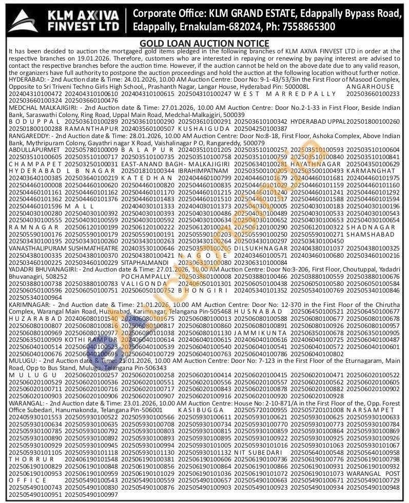 KLM Axiva Finvest Ltd Gold Auctions Auction in Hyderabad