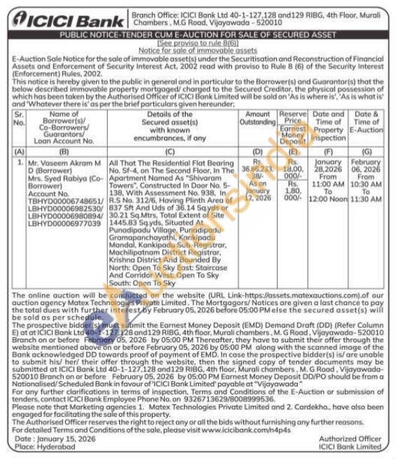 All That The Residential Flat Bearing No. Sf-4, on The Second Floor, In The Apartment Named As "Shivaram Towers", Constructed In Door No. 5-138, With Assessment No. 938, In R.S No. 312/6, Having Plinth Area of 837 Sft And Uds of 36.14 Sq.yds or 30.21 Sq.Mtrs, Total Extent of Site 1445.83 Sqyds, Situated At Punadipadu Village, Punadipadu Gramapanchayathi, Kankipadu Mandal, Kankipadu Sub-Registrar, Machilipatnam District Registrar, Krishna District And Bounded By North: Open To Sky East: Staircase And Corridor West: Open To Sky South: Open To Sky