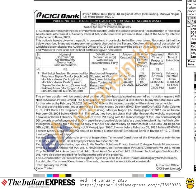 Residential Property Situated At Ward No.2. Keer Mohalla. Gram Tantoti, Ajmer, Rajasthan Area-2701 Sq. Ft