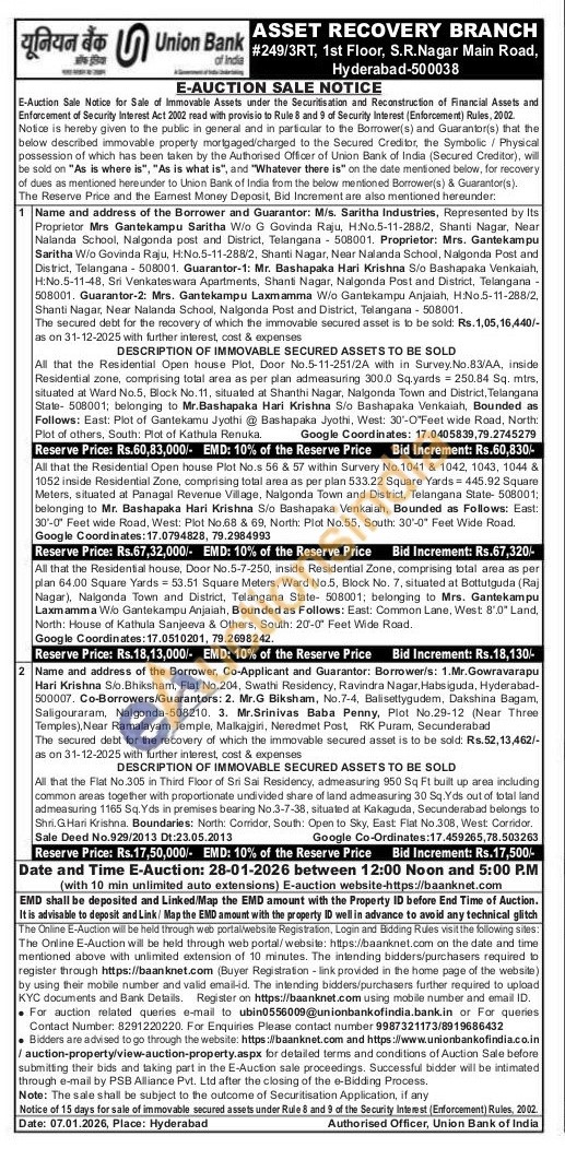 All that the Residential Open house Plot, Door No.5-11-251/2A with in Survey No.83/AA, inside Residential zone, comprising total area as per plan admeasuring 300.0 Sq.yards 250.84 Sq. mirs, situated at Ward No.5, Block No. 11, siluated at Shanthi Nagar, Nalgonda Town and District, Telangana State-508001; belonging to Mr.Bashapaka Hari Krishna S/o Bashapaka Venkaiah, Bounded as Follows: East: Plot of Gantekamu Jyothi Bashapaka Jyothi, West: 30-O'Feet wide Road, North Plot of others, South: Plot of Kathula Renuka