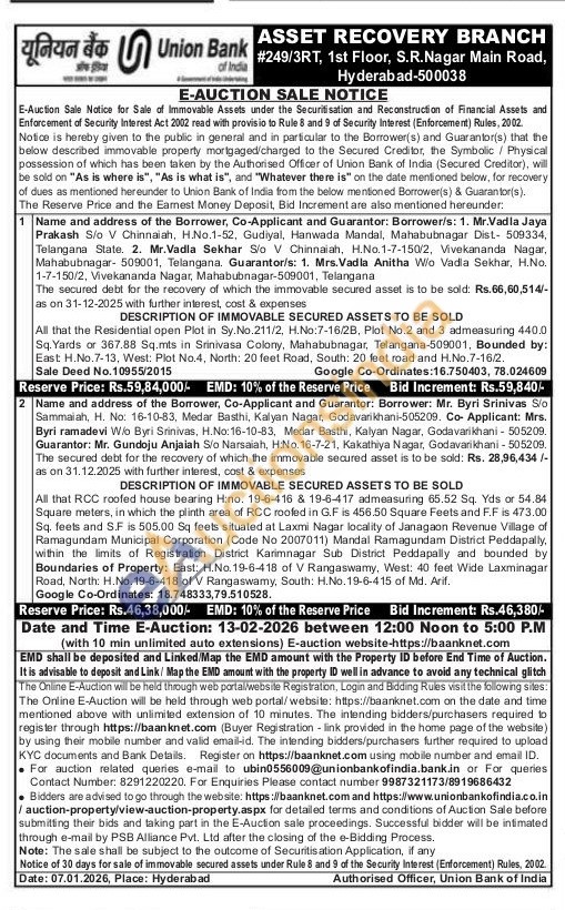 All that RCC roofed house bearing H:no. 19-6-416 & 19-6-417 admeasuring 65.52 Sq. Yds or 54.84 Square meters, in which the plinth area of RCC roofed in G.F is 456.50 Square Feets and F.F is 473.00 Sq. feets and S.F is 505.00 Sq feets situated at Laxmi Nagar locality of Janagaon Revenue Village of Ramagundam Municipal Corporation (Code No 2007011) Mandal Ramagundam District Peddapally, within the limits of Registration District Karimnagar Sub District Peddapally and bounded by Boundaries of Property: East: H.No.19-6-418 of V Rangaswamy, West: 40 feet Wide Laxminagar Road, North: H.No. 19-6-418 of V Rangaswamy, South: H.No. 19-6-415 of Md. Arif
