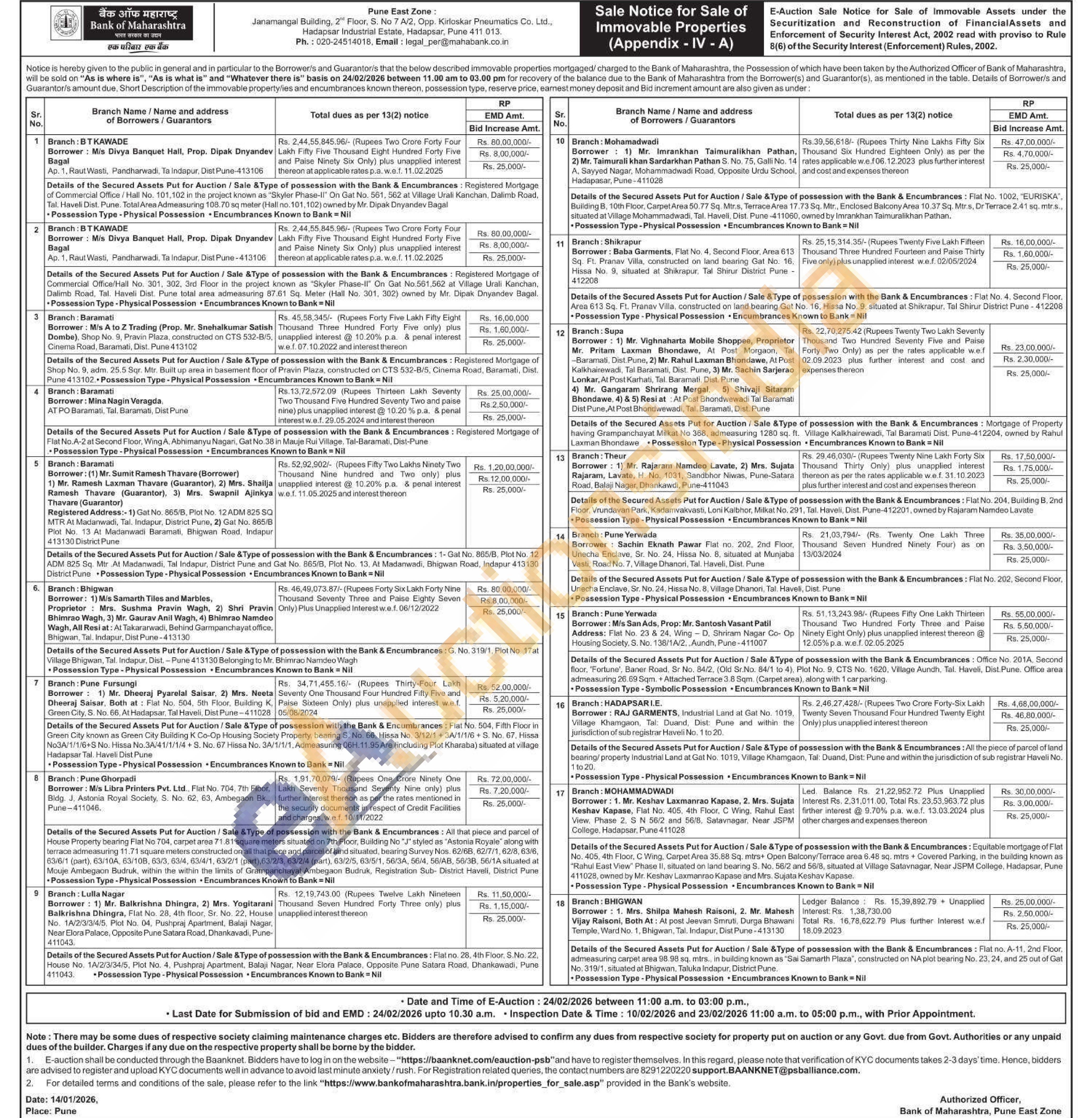 Contact No : 020-24514018, Email: legal_per@mahabank.co.in