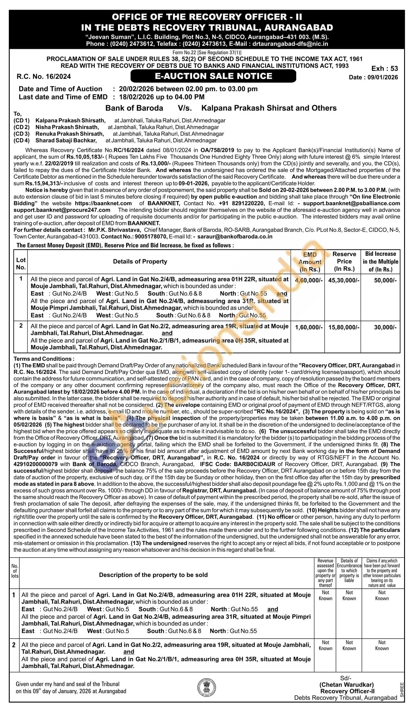 All the piece and parcel of Agri. Land in Gat No.2/2, admeasuring area 19R, situated at Moujeand 2 Jambhali, Tal.Rahuri, Dist Ahmednagar. All the piece and parcel of Agri. Land in Gat No.2/1/B/1, admeasuring area OH 35R, situated at Mouje Jambhali, Tal Rahuri, Dist. Ahmednagar.