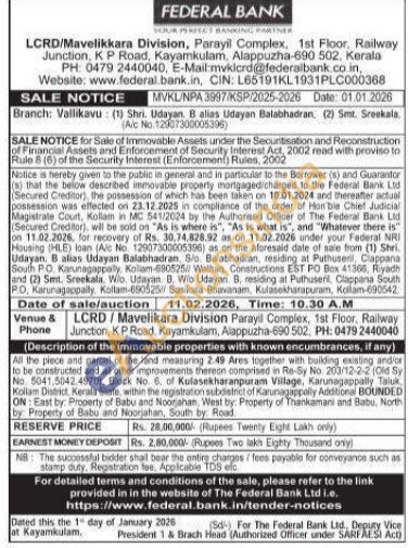 All the piece and parcel of the land measuring 2.49 Ares together with building existing andior to be constructed and all other improvements thereon comprised in Re-Sy No. 203/12-2-2 (Old Sy No. 5041,5042.4970), Block No. 6. of Kulasekharanpuram Village, Karunagappally Taluk Kollam District. Kerala State, within the registration subdistrict of Karunagappally. agappally Additional BOUNDED ON: East by: Property of Babu and Noorjahan, West by: Property of Thankamani and Babu, North by: Property of Babu and Noorjahan, South by Road.