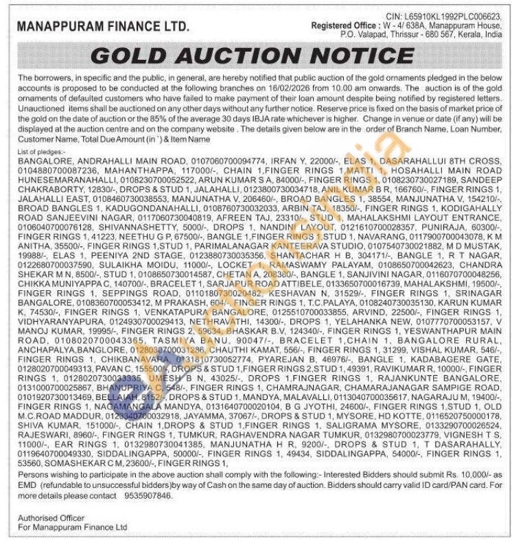 Manappuram Finance Ltd Gold Auctions Auction in Thrissur