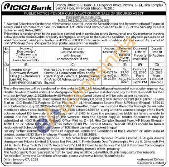 Flat No 105, First Floor, Jyoti Heights Sector 84 Gehukheda Vikas Khand Fand Bhopal-462001 (Admeasuring An Area Of Admeasuring Area 74.34 Sq.mtr)