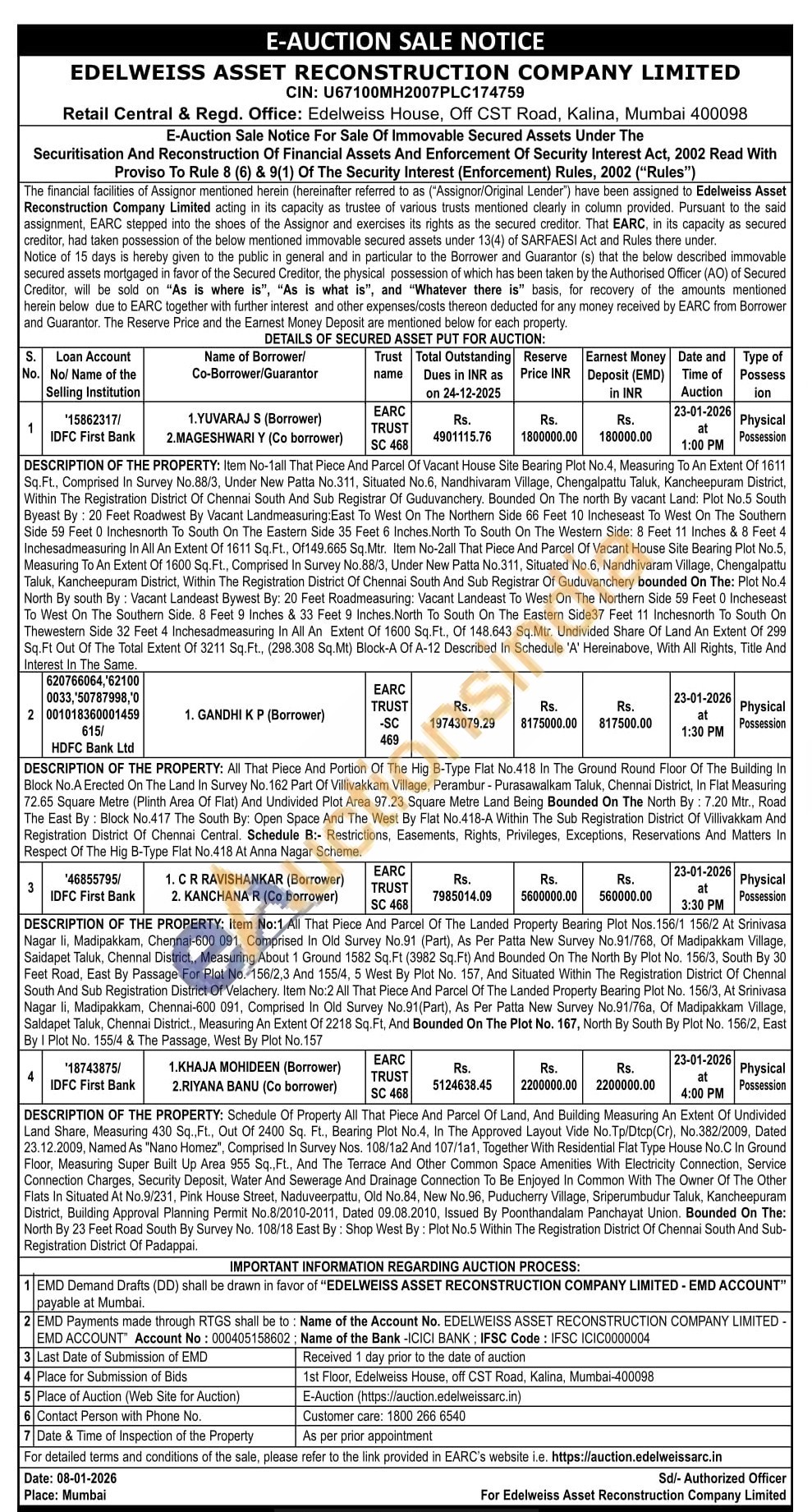 2) All That Piece And Portion Of The Hig B-Type Flat No.418 In The Ground Round Floor Of The Building In Block No.A Erected On The Land In Survey No. 162 Part Of Villivakkam Village, Perambur-Purasawalkam Taluk, Chennai District, in Flat Measuring 72.65 Square Metre (Plinth Area Of Flat) And Undivided Plot Area 97.23 Scuare Metre Land Being Bounded On The North By: 7.20 Mir., Road The East By: Block No.417 The South By: Open Space And The West By Flat No.418-A Within The Sub Registration District Of Villivakkam And Registration District Of Chennai Central. Schedule B: Restrictions. Easements, Rights, Privileges, Exceptions, Reservations And Matters In Respect Of The Hig B-Type Fiat No.418 At Anna Nagar Scheme