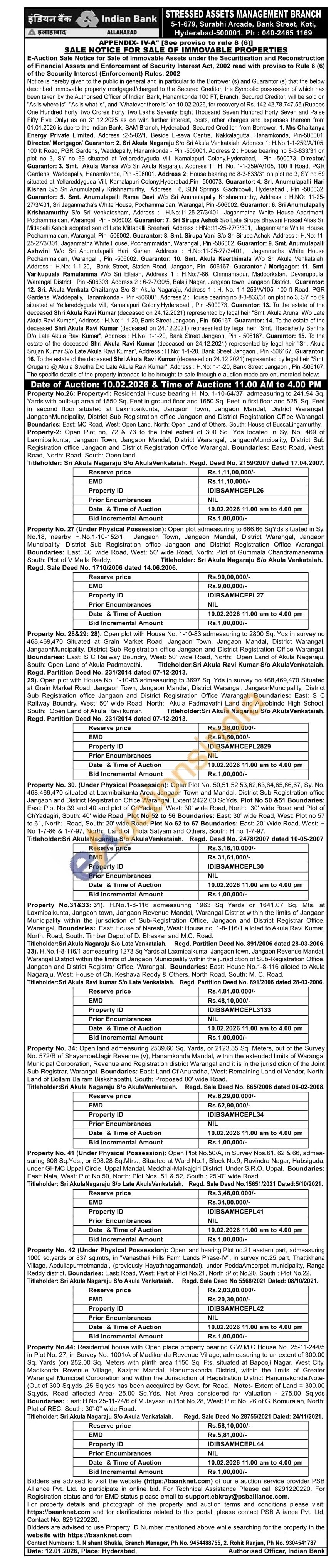 7) Open Plot No.50/A, in Survey Nos.61, 62 & 66, admea-suring 608 Sq. Yds., or 508.28 Sq.Mtrs., Situated at Ward No.1, Block No.9, Ravindra Nagar, Habsiguda, under GHMC Uppal Circle, Uppal Mandal, Medchal-Malkajgiri District, Under S.R.O. Uppal. Boundaries: East: Nala, West: Plot No.50, North: Plot Nos. 51 & 52, South: 25'-0" wide Road.