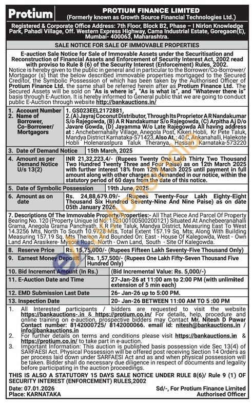 Descriptions Of The Immovable Property/Properties:- All That Piece And Parcel Of Property Bearing No. 120 (Property Unique Id No: 152100100500200121) Situated At Anchebeeranahalli Grama, Anegola Grama Panchyath, KR Pete Taluk, Mandya District, Measuring East To West 14.3256 Mts, North To South 10.9728 Mts, Total Extent 157.19 Sq. Mts; Along With Building Measuring 157.19 Sq. Mts Thereon And Bounded On: East - House Of Kalegowda, West - Own Land And Arasikere- Mysore Road, North Own Land, South Site Of Kalegowda