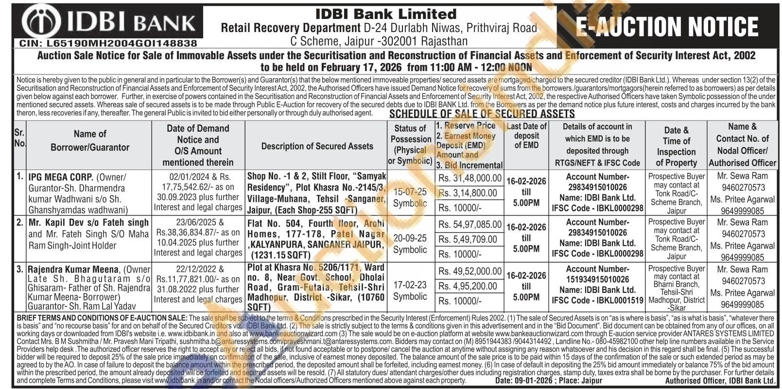 Mr. Sewa Ram 9460270573 Ms. Pritee Agarwal 9649999085