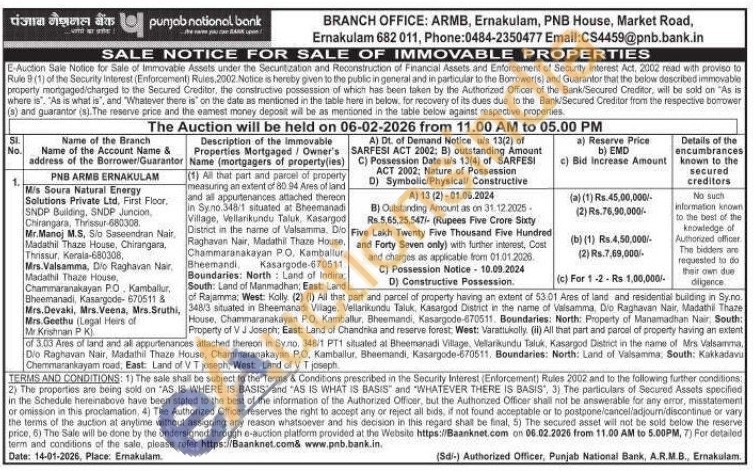 All that part and parcel of property having an extent of 53 01 Ares of land and residential building in Sy.no. 348/3 situated in Bheemanadi Village, Vellarikundu Taluk. Kasargod District in the name of Valsamma, Dio Raghavan Nair, Madathil Thaze House, Chammaranakayan PO, Kamballur, Bheemandi, Kasargode-670511. Boundaries: North: Property of Manamadhan Nair, South: Property of VJ Joseph; East: Land of Chandrika and reserve forest: West: Varattukolly (ii) All that part and parcel of property having an extent of 3.03 Ares of land and all appurtenances altached thereon in Syno. 348/1 PT1 situated at Bheemsanadi Village, Vellarikundu Taluk, Kasargod District in the name of Mrs Valsarvna, Dio Raghavan Nair, Madathil Thaze House, Chammaranakayan P.O, Kamballur, Bheemandi, Kasargode-670511. Boundaries: North: Land of Valsamma, South: Kakkadavu Chemmarankayam road, East: Land of VT joseph, West: Land of VT joseph