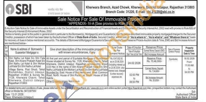 All that part and parcel of Equitable Merigage of Residential House situated at Survey No. 1128, Kherwara Chavni,tehsil Kherwara. District Udaipur, Rajasthan adrmeasuing about Road, North: House of Shri Puran Lal, South: House of Shri 0.03 Hec in the name of Shri Anand Prakash Kalal S/shri o Nathu Lal Kalal & Shri Mohan Lal Kalal Sio Shri Nathu Lal Bounded by: East House of Shri Hemchand, West: Common Hakita