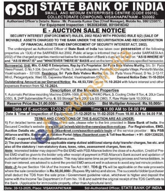 Authorised Officer's Details: Name: Mr. Prasanta Kumar Das (Chief Manager), Mobile No. 9861235877, For Equipment Inspection: 9630834566, 8019416342