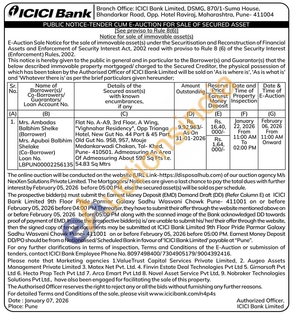54.83 Sq Mtrs Flat No. A-A9, 3rd Floor, A Wing, "Vighnahar Residency", Opp Trianga Hotel, New Gut No. 44 Part & 45 Part, Old Gut No. 958, 957, Mouje Medankarwadi Chakan, Tal- Khed, Pune-410501. Admeasuring An Area Of Admeasuring About 590 Sq Fts l.e.