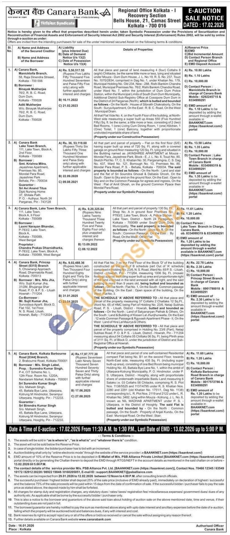 All that Flat No. 2 on the First Floor of the Block 'D' of the building constructed on the land of B schedule part Out of 'A' schedule comprised in Holding No. 23/6, N. S. Road, Ward No. 65 P. S-Liluah. District Howrah, Pin-711204, measuring 1006 Sq. Ft. (mosaic flooring) approx, including super built up area and proportionate right of the land involved in the land annexed with all right, and the said building is more than 9 years old, being butted and bounded as follows-On the North: Flat No. 1. On the South: Common passage of the Building, On the East: Open space of the building. On the West: Flat No. 3. THE SCHEDULE 'A' ABOVE REFERRED TO-All that piece and parcel of the property measuring 37 Cottahs 2 Chattaks 12 Sq.Ft., Word No. 65 of HMC being Part of Holding No. 23/6, Netaji Subhas Road, P. S. Liluah, District Howrah, butted and bounded as follows. On the North: Land of Satyanaryan Pathak & Others, On the South: Land & Building of Kissen Lal Jhunjhunwalla, On the East 12 wide Comman Passage & Rguvash Apartment Phase-II, On the West: Land of Hira Lal Maurya & Others.