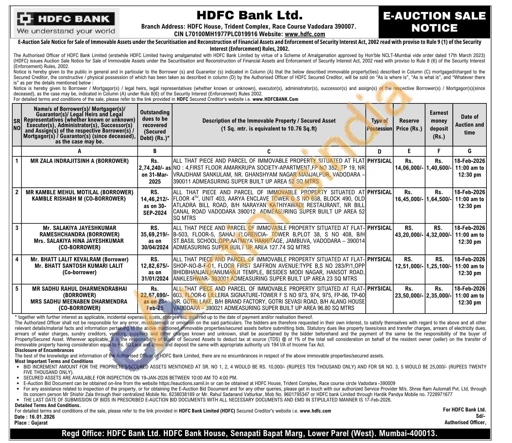 ALL THAT PIECE AND PARCEL OF IMMOVABLE PROPERTY SITUATED AT FLAT-B-503, FLOOR-5, SAHAJ FLORENCIA- TOWER B.PLOT 38, S NO 408, B/H ST.BASIL SCHOOL, OPP.AATMIYA HARRITAGE, JAMBUVA, VADODARA-390014 ADMEASURING SUPER BUILT UP AREA 127.74 SQ MTRS