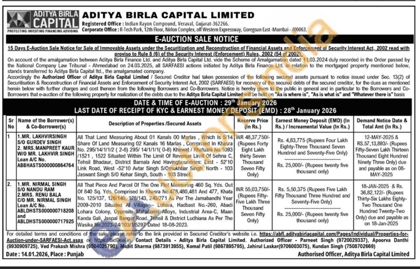 All That Piece And Parcel Of The One Plot Measuring 460 Sq. Yds. Out Of 840 Sq. Yds. Comprised In Khasra No.478,480,481 And 477, Khata No. 125/137, 126/140, 128/143, 240/271 As Per The Jamabandhi Year 2009-2010 Situated At Village Lohara, Hadbast No.-260, Abadi Lohara Colony, Opposite Mahalaxmi Alloys, Industrial Area-C, Maan Kanda Gali, Jaspal Bangar Road, Tehsil & District Ludhiana As Per The Wasika No.2023-24/103/1/5297 Dated 18-08-2023.
