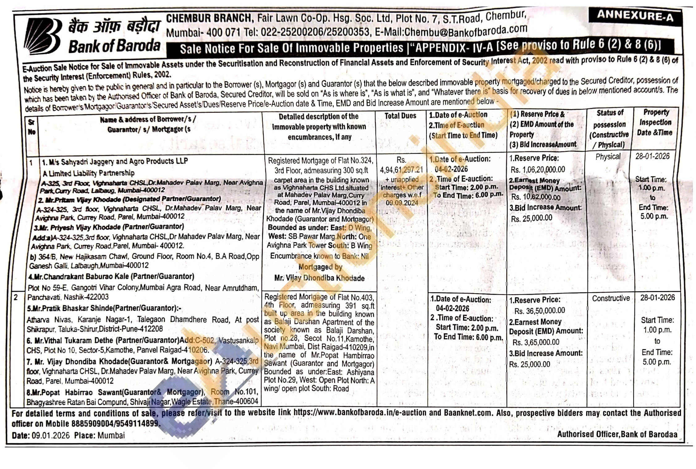 Registered Mortgage of Flat No.403, 4th Floor, admeasuring 391 sq.ft built up area in the building known as Balaji Darshan Apartment of the society known as Balaji Darshan, Plot no.28, Secot No. 11, Kamothe, Navi Mumbai, Dist Raigad-410209,in the name of Mr.Popat Hambirrao Sawant (Guarantor and Mortgagor) Bounded as under East: Ashiyana Plot No.29, West: Open Plot North: A wing/ open plot South: Road