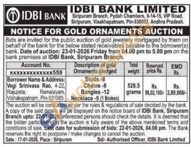 IDBI Bank Gold Auctions Auction in Visakhapatnam