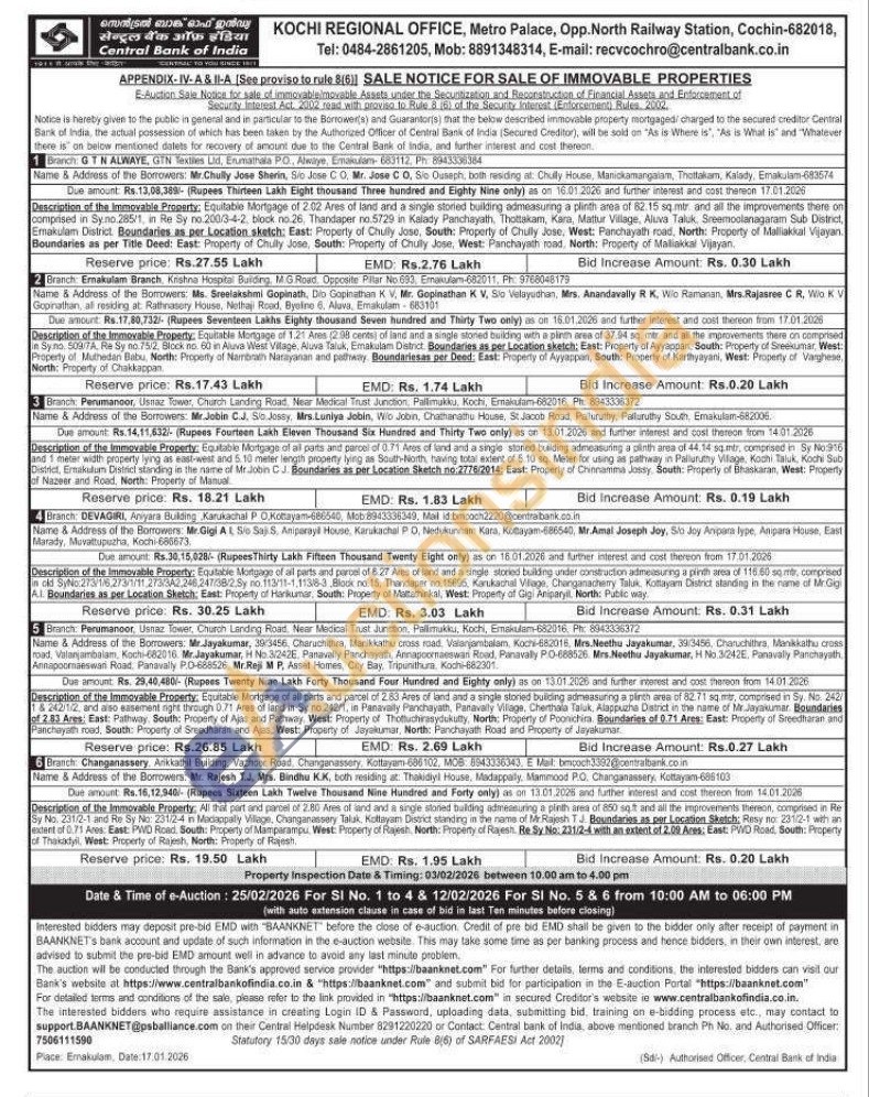 5) Equitable Mortgage of all parts and parcel of 2.83 Ares of land and a single storied building admeasunng a plirich area of 82.71 sq mar, comprised in Sy. No. 242/1 & 242/1/2, and also easement night through 0.71 Ares of land in Sy no 242/1, in Panavally Panchayath, Panavaly Village, Cherthala Taluk, Alappuzha District in the name of Mr. Jayakumar. Boundaries of 2.83 Ares: East: Pathway. South: Property of Ajas and Pathway West: Property of Thottuchinasydukulty, North: Property of Poonichira Boundaries of 0.71 Ares: East: Property of Sreedharan and Panchayath road, South: Property of Sreedharan and Ajas, West: Property of Jayakumar, North: Panchayath Road and Property of Jayakumar.