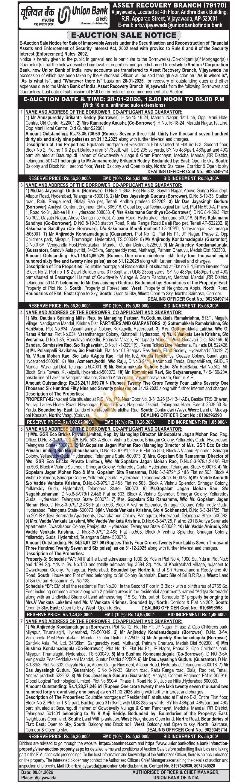Description of The Properties: Equitable mortgage of Residential Flat situated at Flat no B-3, Second floor, Block No 2, Plot no 1 & 2 part, Buildup area 3173sqft, with UDS 235 sq yards, SY No 488/part, 489/part and 490/part, situated at Basuragudi Halmet of Gowdavelly Vullage & Gram Panchayat, Medchal Mandal RR District, Telangana-501401 belonging to Mr Annapureddy Srikanth Reddy. Bodunded by: East: Open to sky, South: Balcony and Block No 1 second floor, West: Balcony and Open to sky, North: Staircase, Corridor & Open to sky