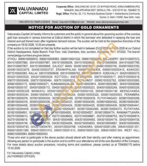 Valuvanadu Capital Limited Gold Auctions Auction in New Delhi