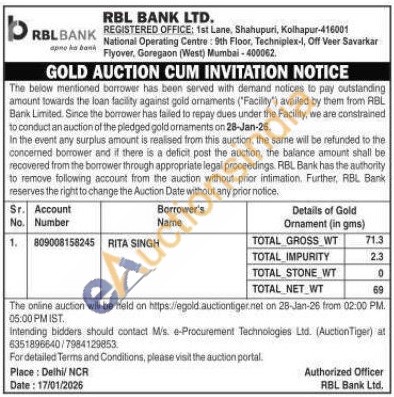 RBL Bank Gold Auctions Auction in New Delhi