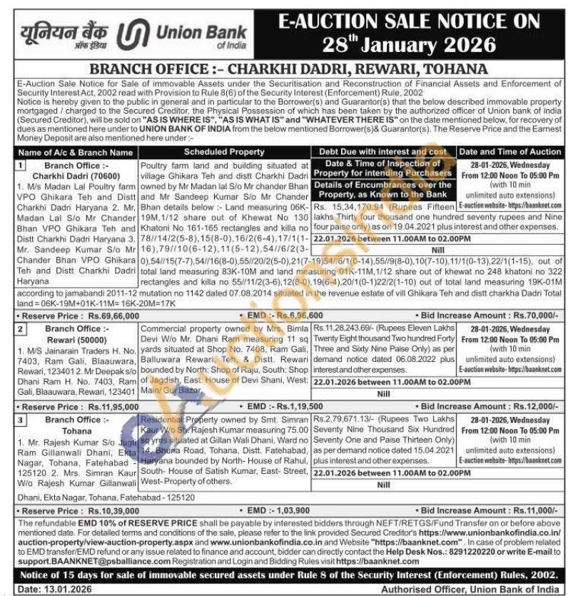 2) Commercial property owned by Mrs. Bimla Devi W/o Mr. Dhani Ram measuring 11 sq yards situated at Shop No. 7408, Ram Gali, Balluwara Rewari, Teh. & Distt. Rewari bounded by North: Shop of Raju, South. Shop of Jagdish, East: House of Devi Shani, West: Main/Gur Bazar