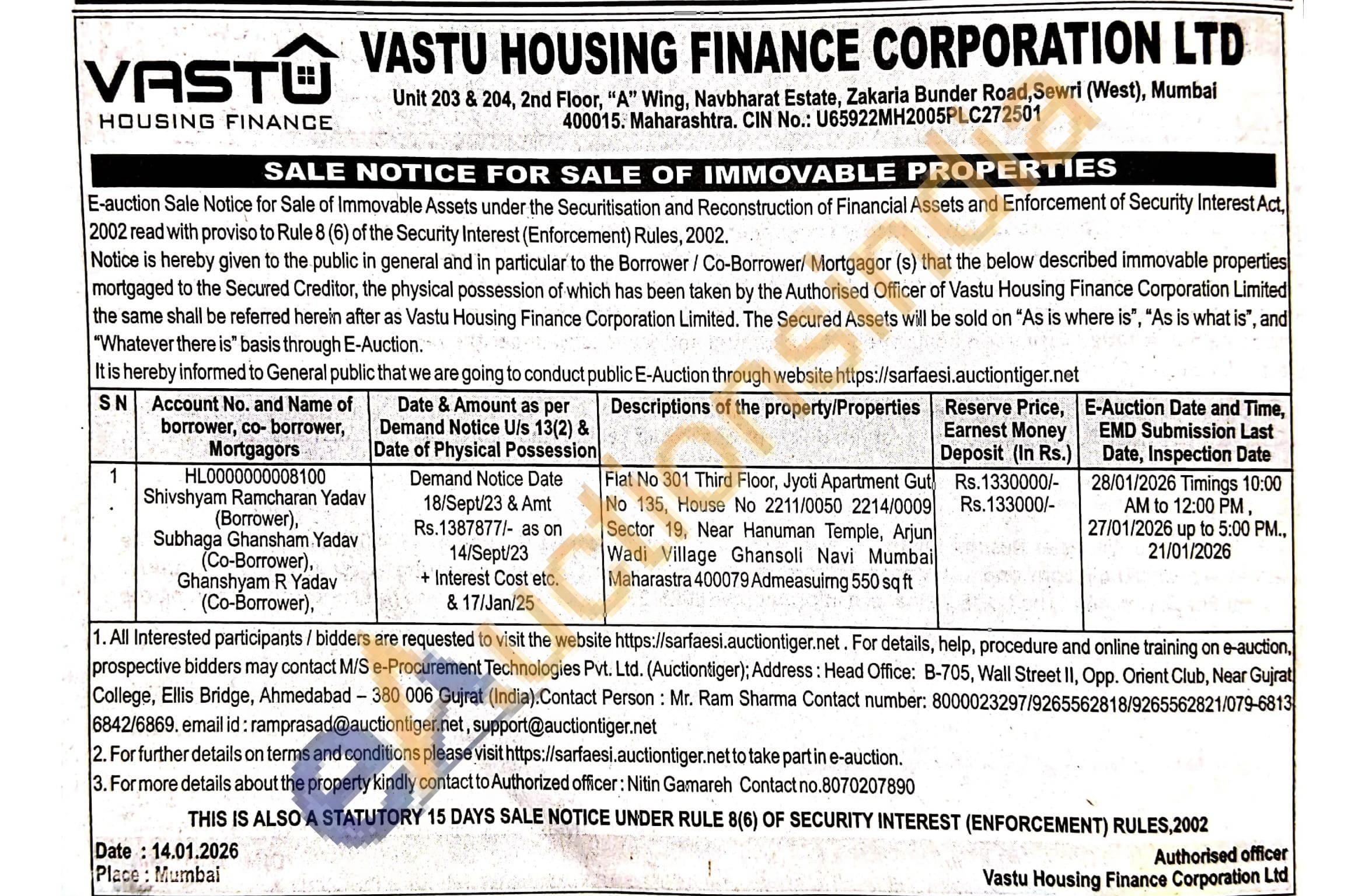 Flat No 301 Third Floor, Jyoti Apartment Gut No 135, House No 2211/0050 2214/0009 Sector 19, Near Hanuman Temple, Arjun Wadi Village Ghansoli Navi Mumbai Maharastra 400079 Admeasuing 550 sq ft