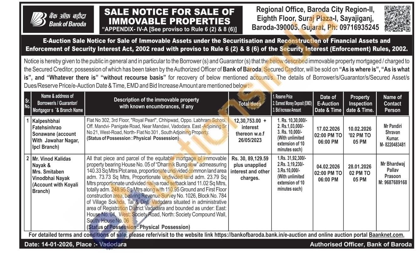 All that piece and parcel of the equitable mortgage of immovable property bearing House No. 05 of "Dharmik Bungalow" admeasuring 140.33 Sq Mtrs Plot area, proportionate undivided common land area adm. 73.73 Sq Mtrs, Proportionate undivided land adm. 23.79 Sq Mtrs proportionate undivided naliya road setback land 11.02 Sq Mtrs, totally adm. 248.95 Sq Mtrs along with 110.95 Ground and First Floor construction area, bearing Revenue Survey No. 1026, Block No. 784 of Village Sokhda, Tal & Dist. Vadodara situated in administrative area of Registration District Vadodara and bounded as under: East: House No. 04, West: Society Road, North: Society Compound Wall, South: House No. 06. (Status of Possession: Physical Possession)
