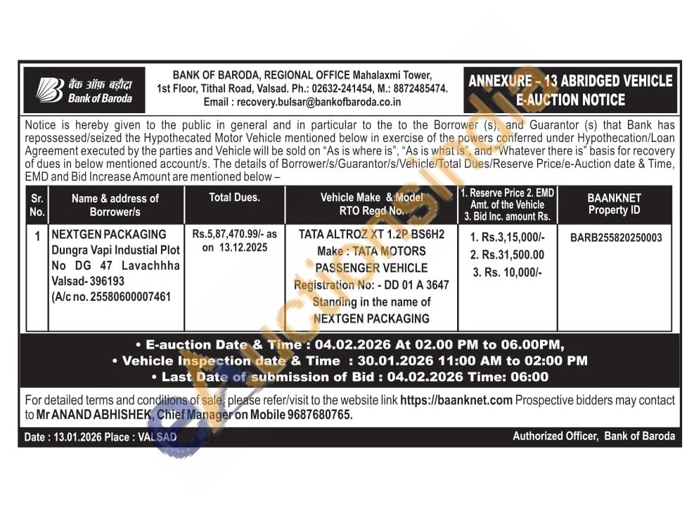 TATA ALTROZ XT 1.2P BS6H2 Make: TATA MOTORS PASSENGER VEHICLE Registration No: - DD 01 A 3647 Standing in the name of NEXTGEN PACKAGING