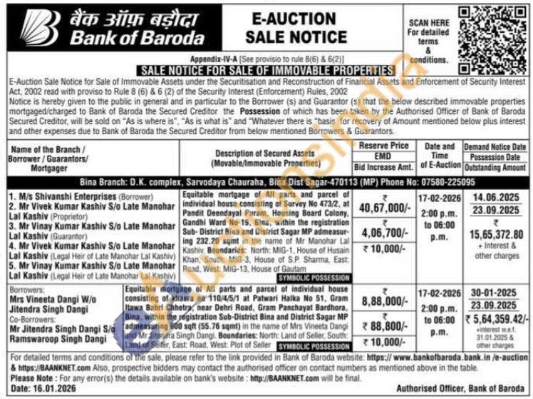 Equitable mortgage of All parts and parcel of individual house consisting of Survey No 473/2, at Pandit Deendayal Puram, Housing Board Colony, Gandhi Ward No-19, Bina, within the registration Sub-District Bina and District Sagar MP admeasuring 232.20 sqmt in the name of Mr Manohar Lal Kashiv. Boundaries: North: MIG-1, House of Husain Khan, South: MIG-3, House of S.P. Sharma, East: Road. West: MIG-13, House of Gautam
