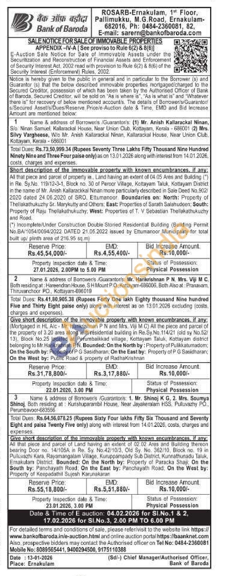 All that piece and parcel of Land having an extent of 02.02 Ares and Building thereon bearing Door no. 14/105A in Re. Sy. No.42/10/3, Old Sy. No. 362/10, Block no. 19 in Pulluvazhi Kara, Rayamangalam Village, Kuruppampady Sub District, Kunnathunadu Taluk, Ernakulam District. Bounded: On the North by: Property of Paracka Shaji, On the South by: Panchayath Road, On the East by: Panchayath Road: On the West by: Property of Keepadathil Sujesh Karunakaran