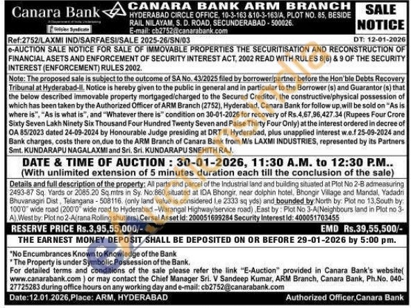 Sri. V Sandeep Kumar : 040-27725283 & cb2752@canarabank.com
