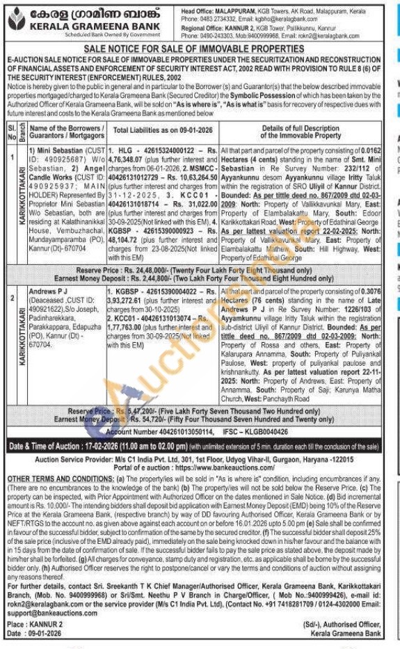 Sri. Sreekanth T K Mob. No. 9400999968) or Sri/Smt. Neethu PV Branch in Charge/Officer, (Mob No.: 9400999426),