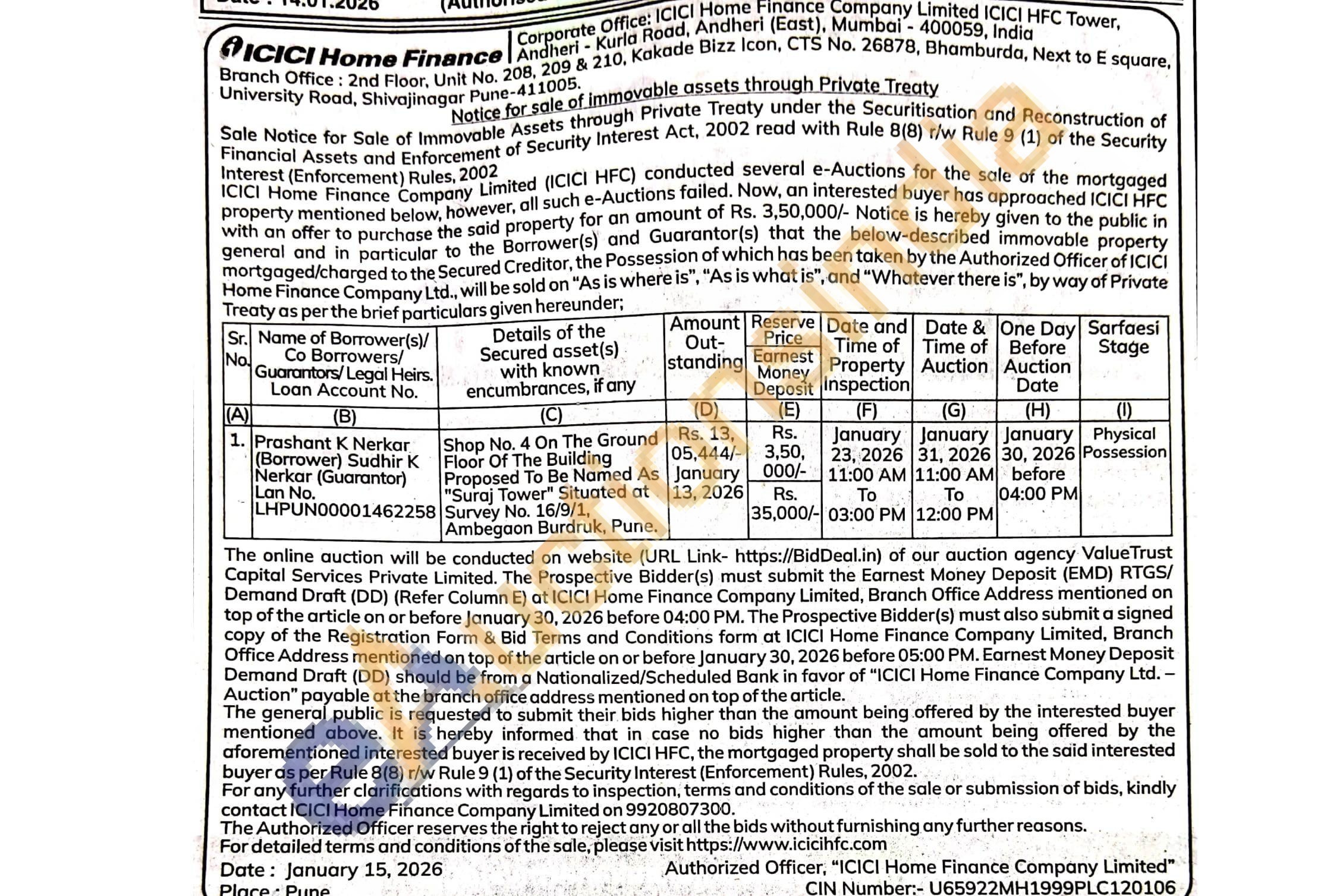 Shop No. 4 On The Ground Floor Of The Building Proposed To Be Named As "Suraj Tower" Situated at Survey No. 16/9/1, Ambegaon Burdruk, Pune.