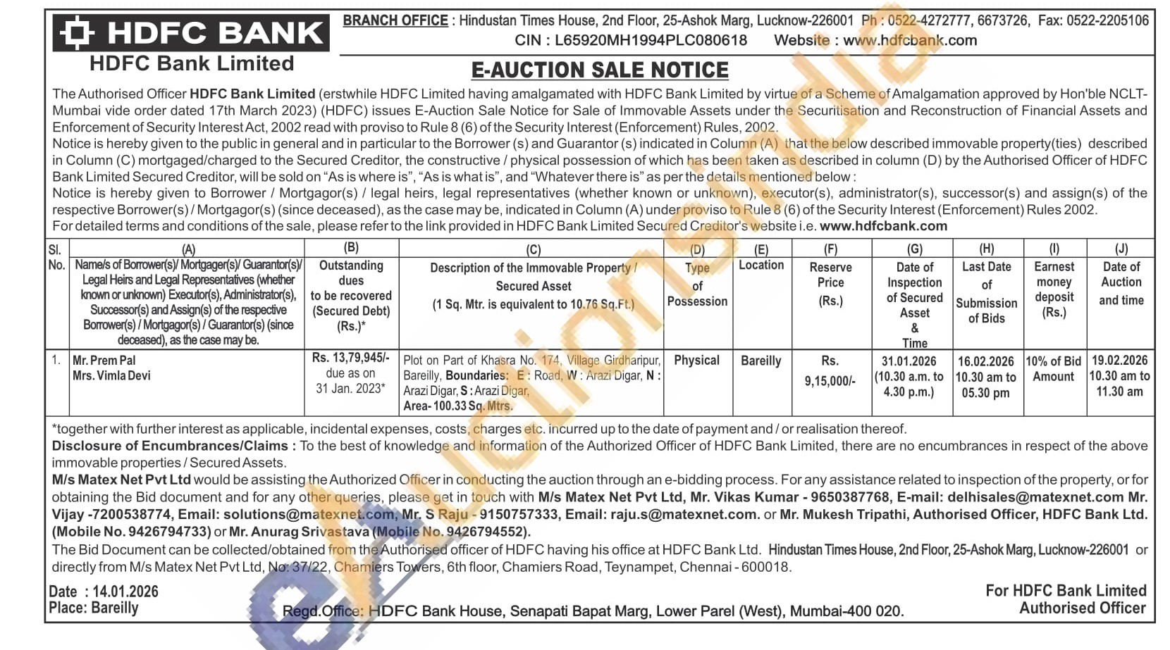 Plot on Part of Khasra No. 174, Village Girdharipur, Bareilly, Boundaries: E: Road, W: Arazi Digar, N: Arazi Digar, S: Arazi Digar, Area-100.33 Sq. Mtrs