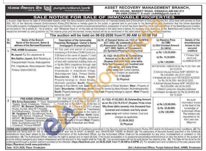 Contact no : 0484-2350477, E-mail: cs4459@pnb.bank.in