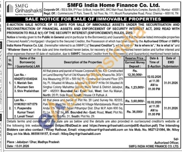 All that piece and parcel of house Corporation No. 431 Constructed on Land Bearing Part of Old Khasra No. 303 New Khasra No. 303/1 Ara Measuring 25*20=500 Sq. Ft. Constructed Ground Floor 375 Sq. Ft. Situated At Mouza Jabalpur NB 264 PH No 04 Situated At Singhai Colony Mahatma Gandhi Ward Tehsil & District Jabalpur, MP-482001 Bounded As:- East: Nali, West: Sen Ka Makan, North: 20 Ft. Side Road, South: House Of Pathak Ji.