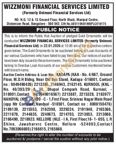 Wizzmoni Financial Services Limited Gold Auctions Auction in Kadapa