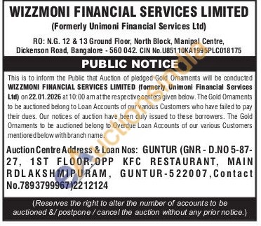 Wizzmoni Financial Services Limited Gold Auctions Auction in Guntur