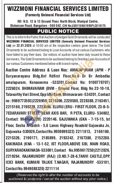 Wizzmoni Financial Services Limited Gold Auctions Auction in Konaseema