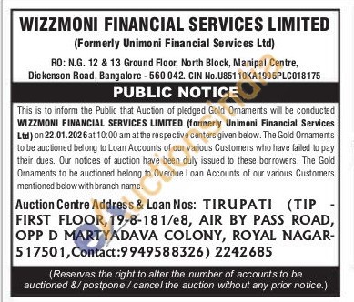Wizzmoni Financial Services Limited Gold Auctions Auction in Thirupathi