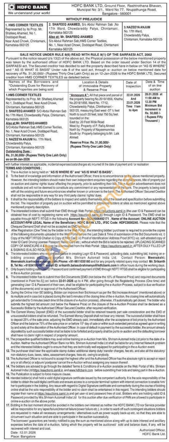 All that piece and parcel of the property bearing No.2019/1856, Khatha No.2019/1856, Ward No. 17/12 Chowdareddy Palya, Chinthamani -563125, measuring East west-37½ feet North to south 20 feet, total 750 Sq.feet.