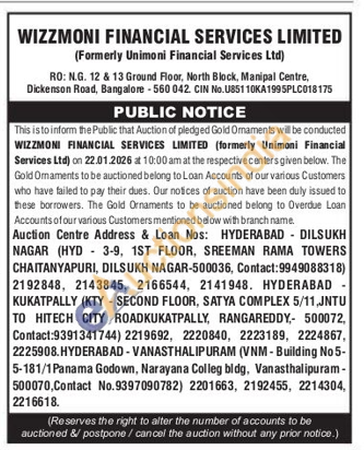 Wizzmoni Financial Services Limited Gold Auctions Auction in Hyderabad