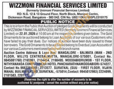 Wizzmoni Financial Services Limited Gold Auctions Auction in Mangalore